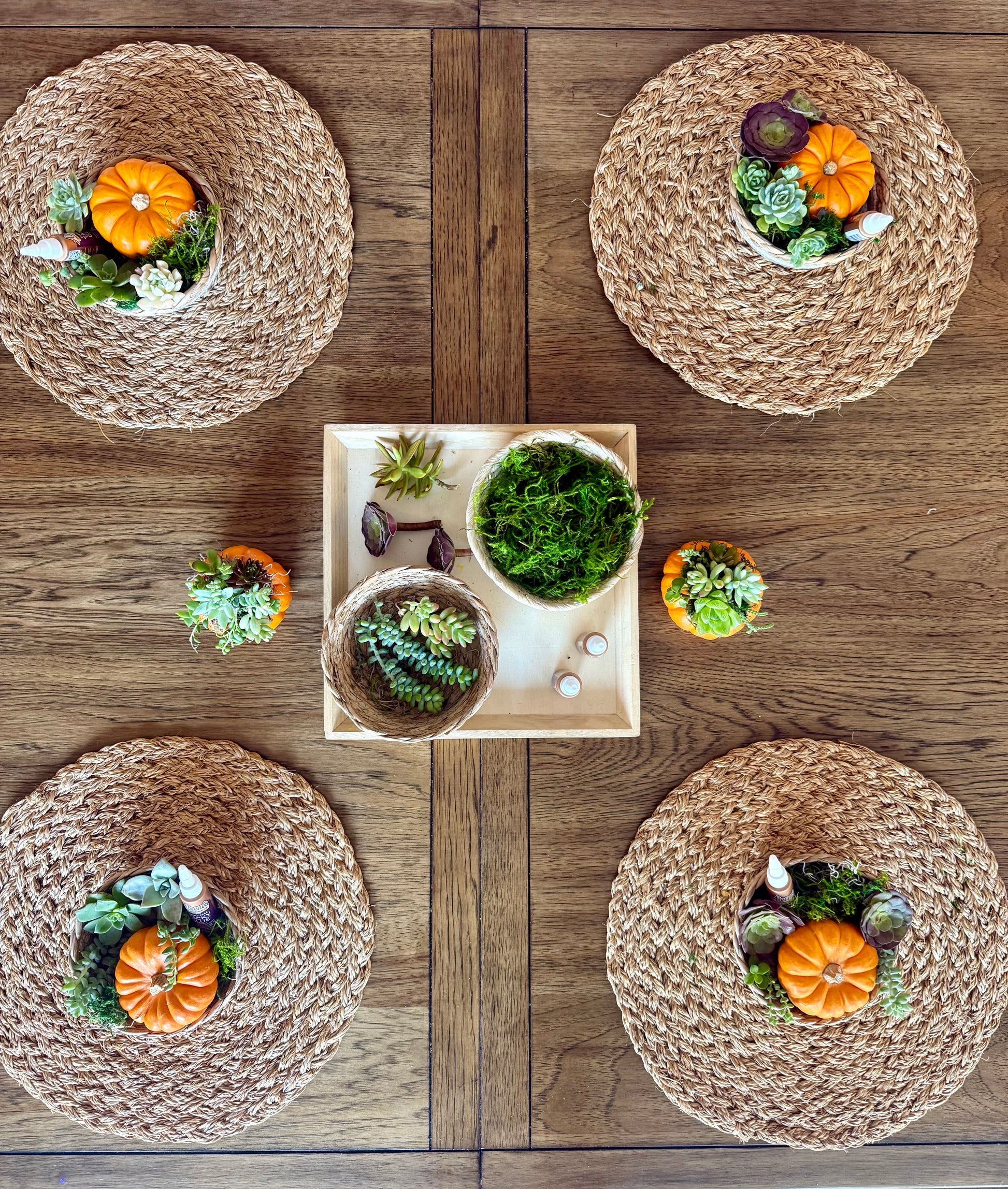 Create your own succulent pumpkin! Our DIY Kit includes everything you need to design your own handcrafted arrangement. Each kit comes with a mini orange pumpkin, a variety of locally sourced succulents, natural moss, and easy-to-follow instructions.