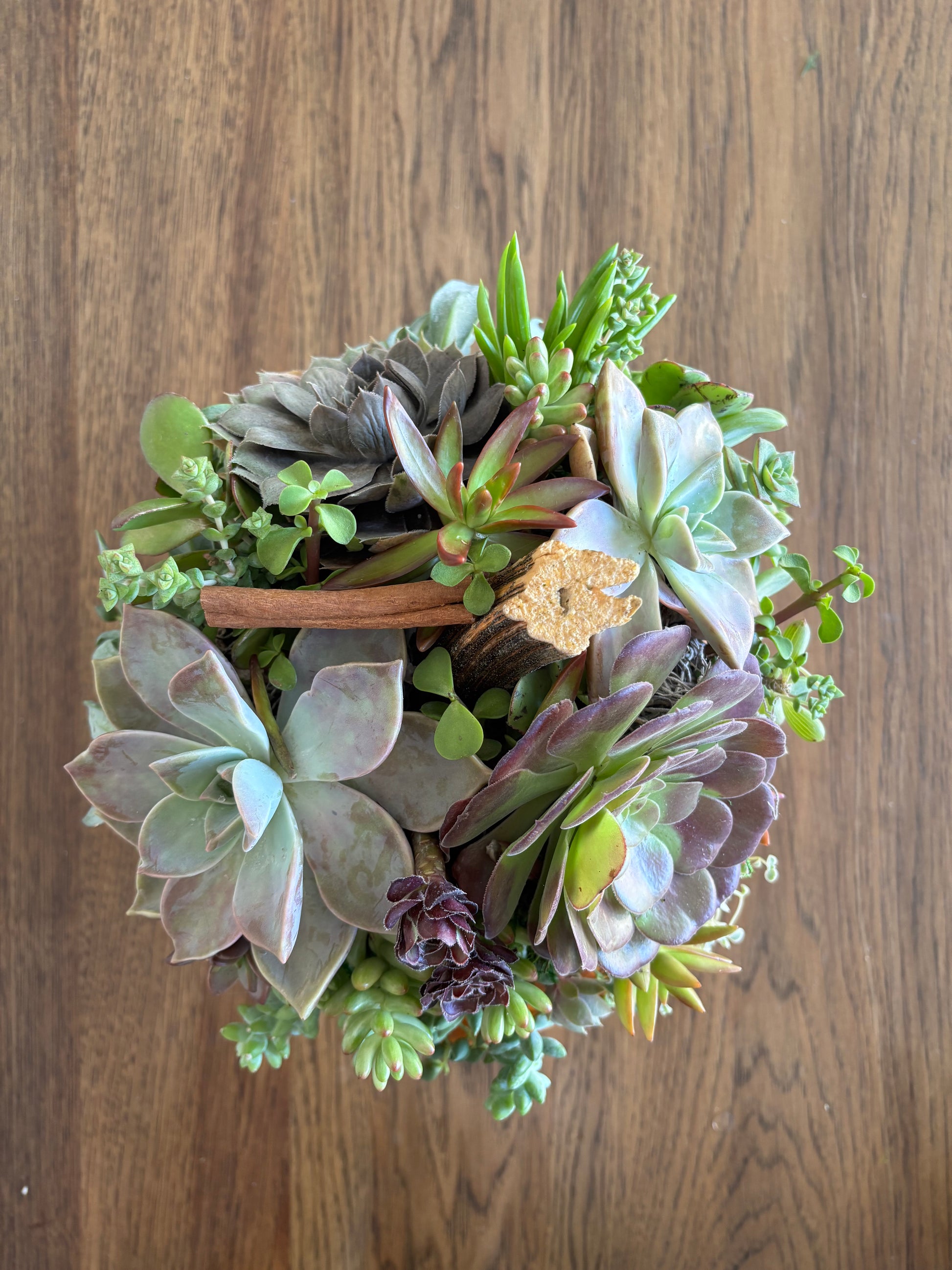 Each arrangement is thoughtfully handcrafted using a unique mix of succulents and moss. No two are ever the same making every piece one-of-a-kind with its own natural variation in colors and plants.
